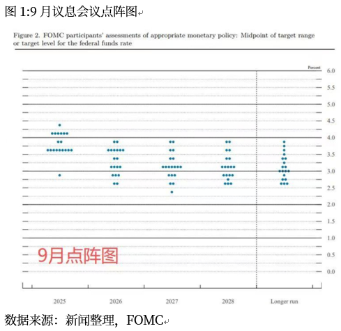 反过来,正是因为顶着历史新高的风险偏好,美联储内部分歧剧烈。9月点阵图显示未来10月、12月两次会议上降息1-2次的支持大致各半。分歧的根源就在于没付出任何代价的预防式降息下,市场已经酝酿空中加油的新一轮再通胀炒作。就业数据支持降息,而市场偏好愈发不支持。担忧的官员认为,这么做的结局令实体经济落入严重滞胀的环境,或者流动性宽松环境下,杠杆探索到极限后自己触发金融危机。当前市场对于再通胀的金融定价激进,例如美股、黄金、铜等高金融属性资产,又例如反馈长期通胀的美债期限利差,倒逼着更多的美联储官员再倒向通胀定价的阵营。