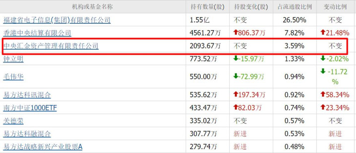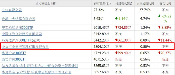 而没想到,咱们的国家队老大哥,中央汇金,竟然也有重仓5家CPO。