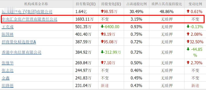 中央汇金重仓公司1693万股,位列第二大流通股东。