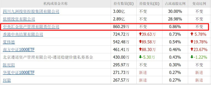 二季度,中央汇金重仓860万股,位列第三大流通股东。